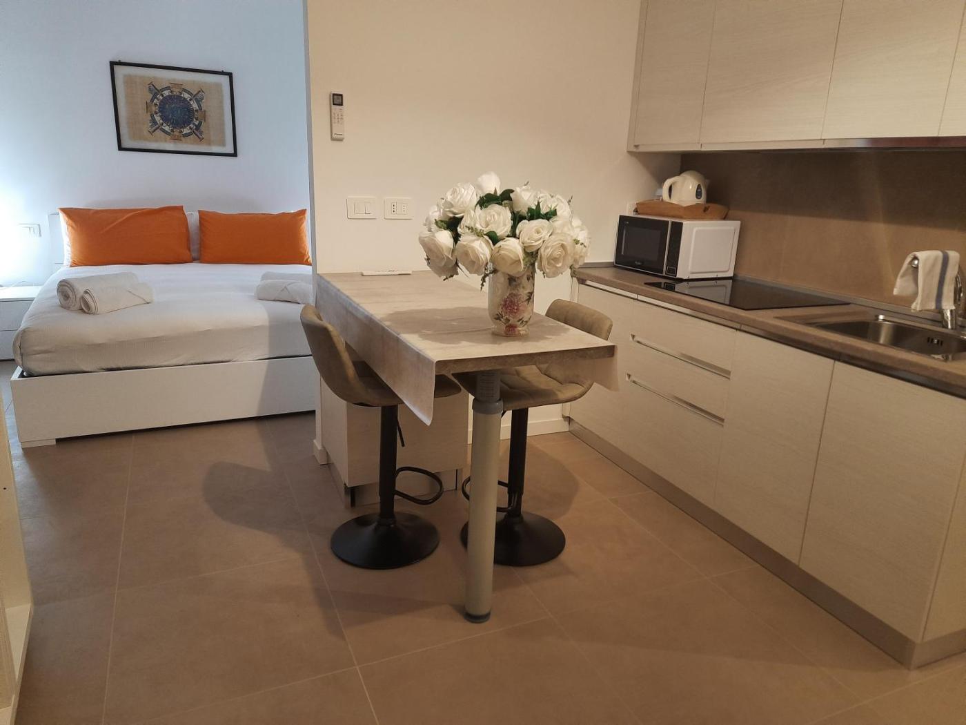 Appartamento con 1 Camera da Letto. Boasting a private entrance, this air-conditioned apartment comes with 1 living room, 1 separate bedroom and 1 bathroom with a shower and a bidet. Guests can make meals in the kitchen that features a stovetop, a refrigerator, a dishwasher and a microwave. The apartment features a seating area, a dining area, a wardrobe, an electric kettle and a flat-screen TV. The unit has 2 beds.