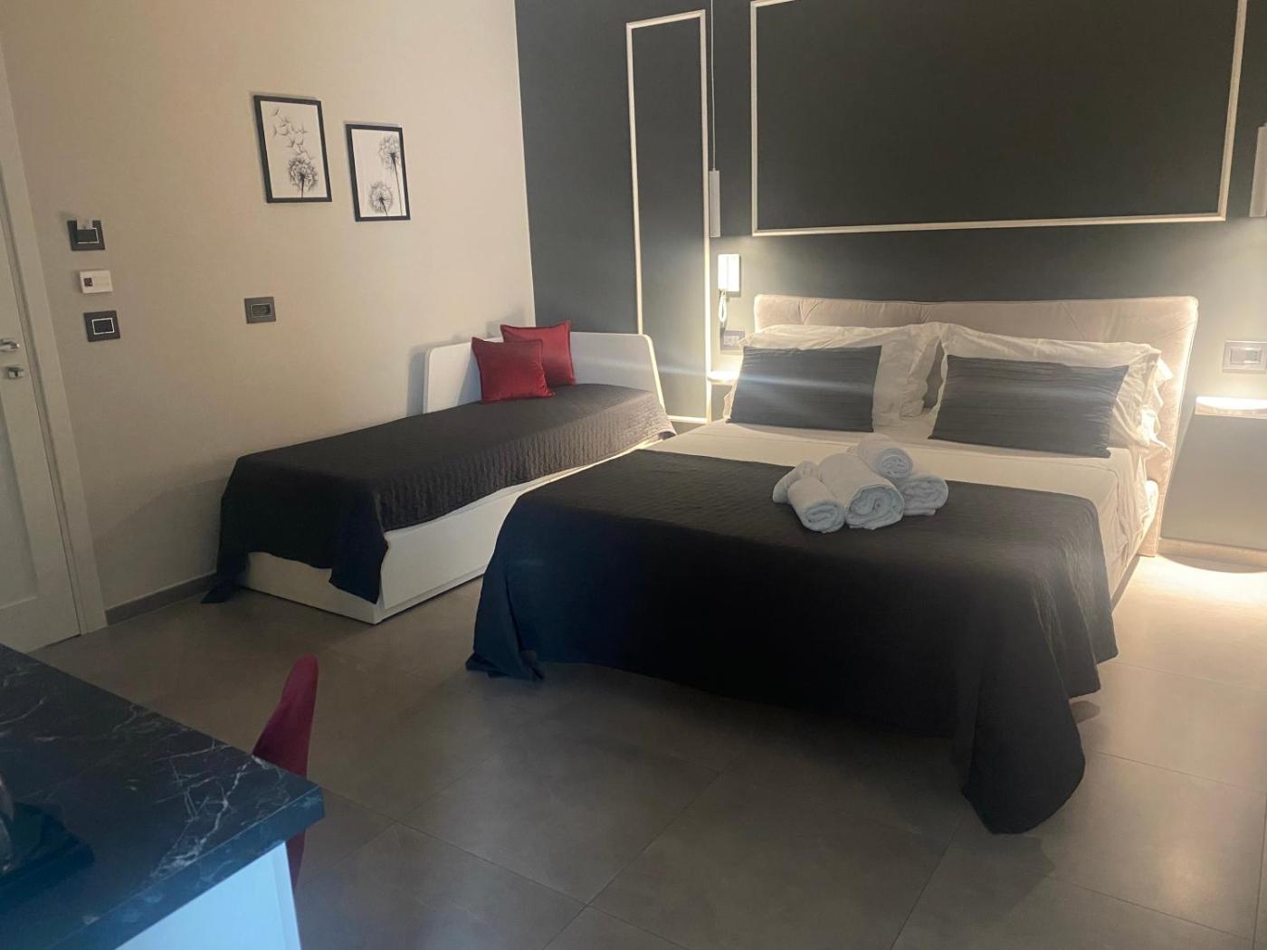Camera Matrimoniale Deluxe. Camera matrimoniale climatizzata dotata di TV a schermo piatto con canali satellitari, bagno privato e balcone con vista sulla cittĂ . Lalloggio dispone di 1 letto. ;